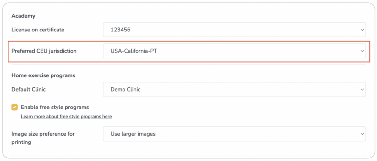 Under your settings, add your preferred CEU jurisdiction using the dropdown:
