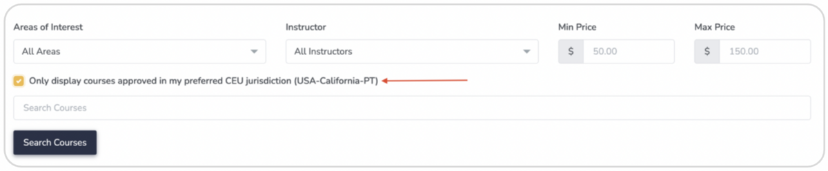 • Filter courses by CEU jurisdiction