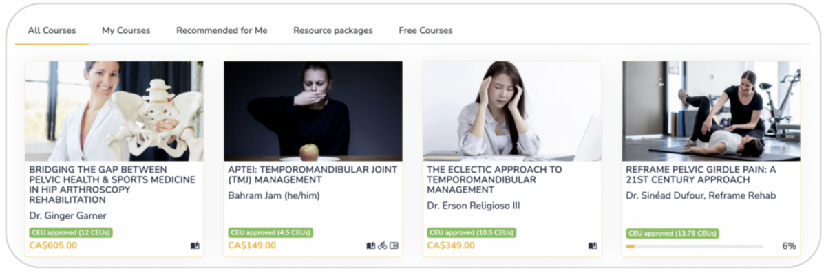 Whether you're looking to fulfill CEU requirements or expand your skills in areas like pelvic health, orthopedics, pain science, or neuro rehab, you’ll find courses created by leading clinicians and educators.